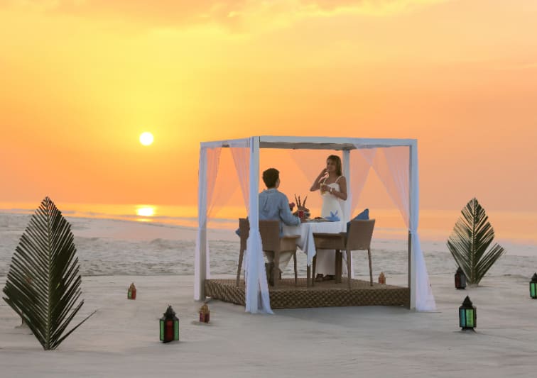 起始费率Begin your morning with our exclusive Sunrise Breakfast, a serene beachfront dining experience set in a private cabana.