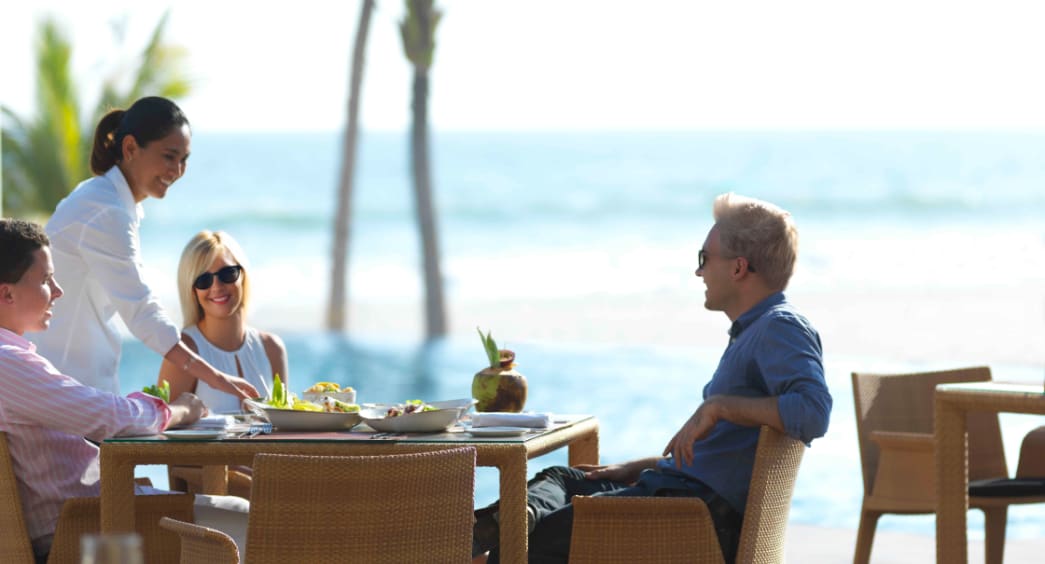 Al Mina餐厅供应地中海美食,拥有休闲的用餐氛围。午餐可以品尝经典的意大利、希腊和西班牙菜 - 每款都使用最优质的时令食材和现捕海鲜精心烹制。选择您喜欢的环境 – 可以在海岸餐桌上用餐、沙滩上惬意用餐或在泳池畔用餐。