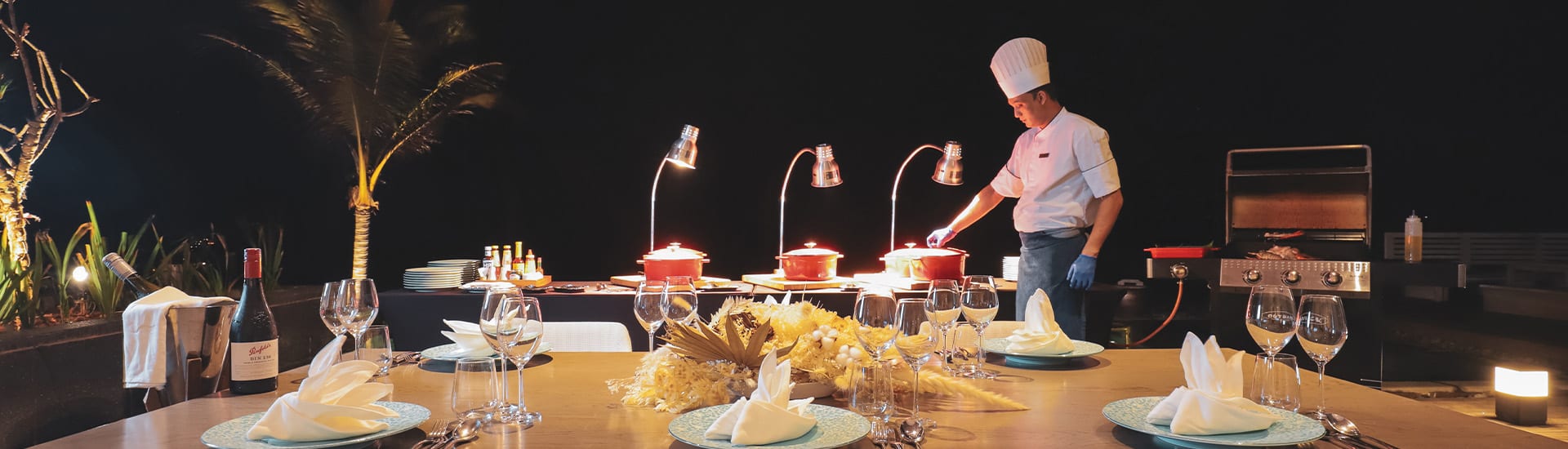 在舒适的泳池别墅或海滩官邸中,与家人和朋友共度惬意时光,尽情享受专属烧烤的美味盛宴。 专属主厨亲自掌炉烹制,当您惬意小憩时,诱人的烤肉、海鲜与配菜香气四溢,令人食指大动。 或者,您也可以亲自掌烤,由贴心管家为您打点一切细节,打造一场尽善尽美的用餐体验。