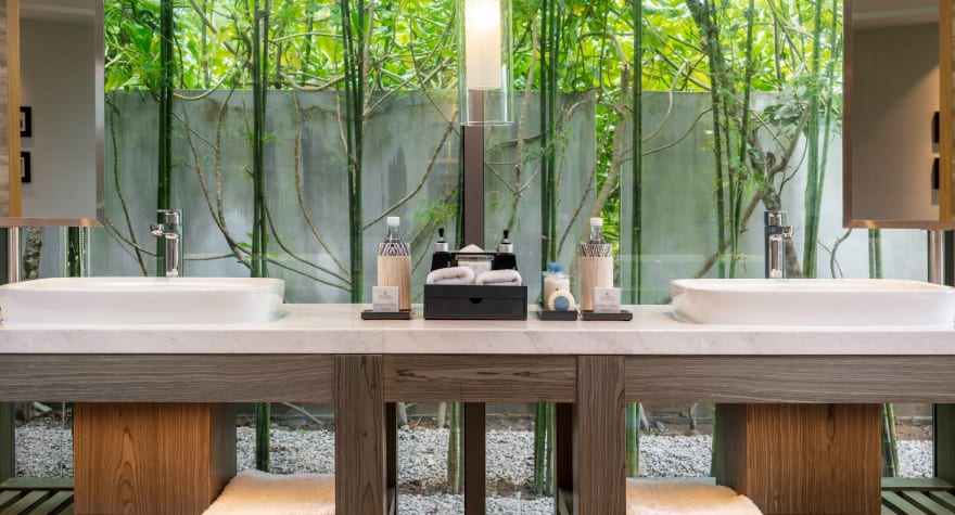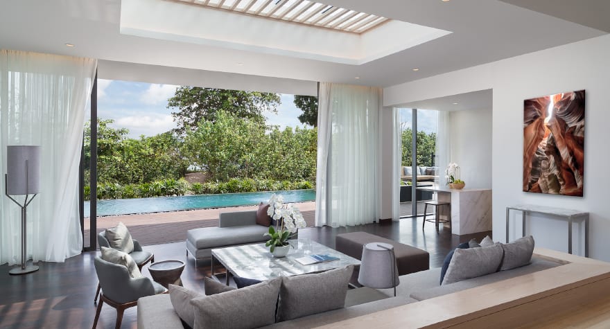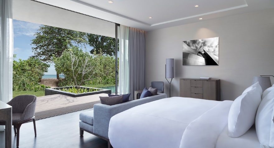 在专属奢华海滨官邸中,尽享精致私密的梦幻热带假期。 每日于清风徐来的全日餐厅享用早餐与午餐,更可尊享餐饮与水疗专属优惠。 您的奢华官邸配备贴心管家服务,卧室布置雅致,可眺望修剪整齐的草坪与湛蓝海景;厨房设备齐全,配有高端家电;宽敞通透的浴室设有浸泡浴缸与静谧景致,让您在宁静氛围中尽享彻底的身心放松。