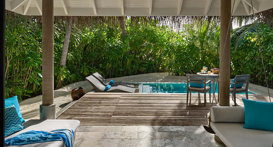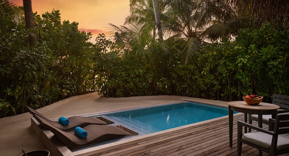 您的马尔代夫泳池别墅可欣赏日出美景,拥有5.8米泳池,还有别墅管家悉心照顾您的所有需求。在柔软白沙滩上的下沉式泳池中畅游,咫尺之外就是印度洋碧蓝的海水。躺在泳池边的休闲椅上享受阳光浴。在这家海滨度假酒店,阳光露台配有休闲椅、日光躺椅和用餐区,每天傍晚可以在这里欣赏夕阳之美。