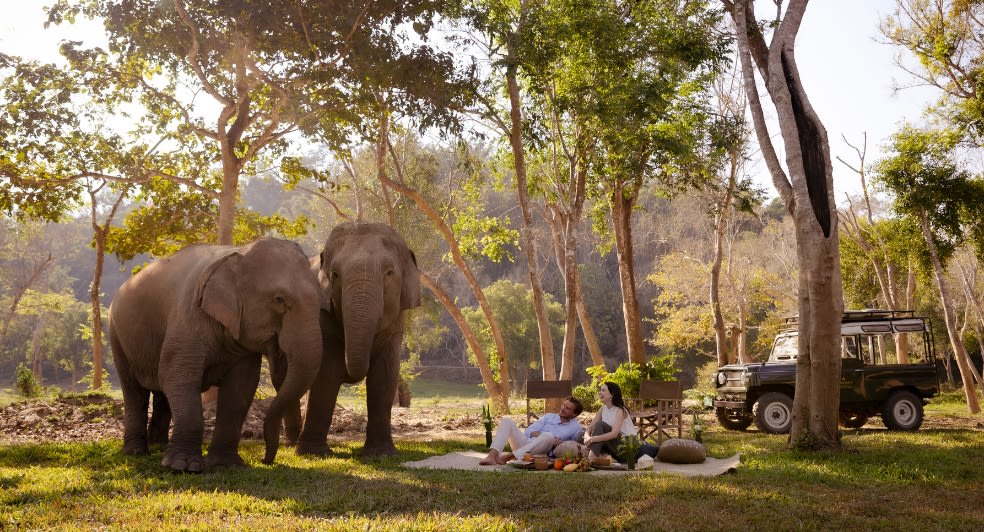 在大象的陪伴下进入山谷。 品尝野餐篮中的美食,您的大象伙伴也可以在附近享用自己的小吃。