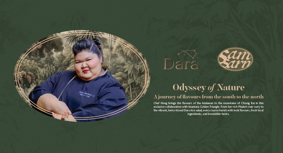 Chef Hong brings the flavours of the Andaman to the mountains of Chiang Rai in this exclusive collaboration with Anantara Golden Triangle. From her rich Phuket crab curry to the vibrant, berry-kissed Dara rice salad, every course bursts with bold flavours, fresh local ingredients, and irresistible twists.