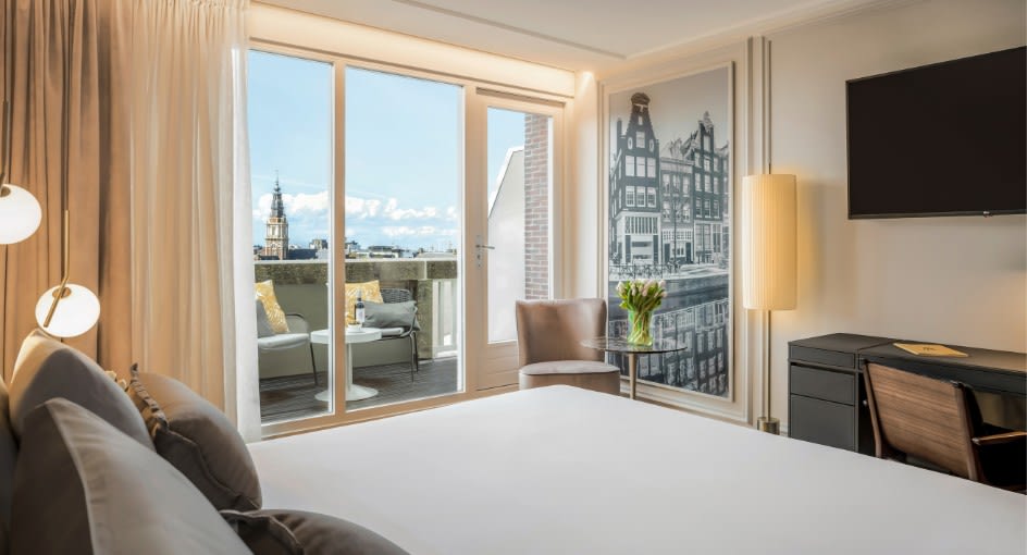 清晨,倚身私密露台上,尽情呼吸令人神清气爽的新鲜空气。暮色降临后,享受24小时客房服务,在露台上开启一场浪漫的烛光晚餐。从这些顶层高级客房还可以欣赏到无与伦比的美妙风景,阿姆斯特丹的屋顶全景尽收眼底,营造出一种美丽动人的奇妙氛围。