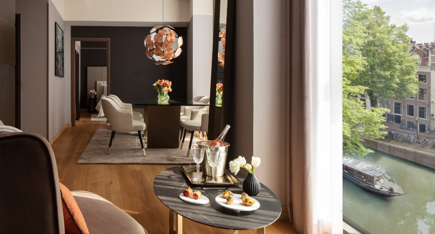 世界上没有一处景色能像环绕全城的童话运河一样代表“阿姆斯特丹”。高级套房不仅位置优越,而且配备有宽敞明亮的起居区、用餐区和工作区,以及各种一流设施。