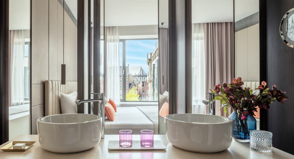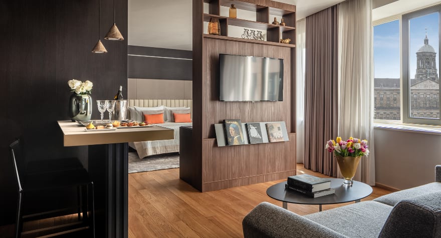 这些套房空间宽敞,并可欣赏独特美景。楼下的水坝广场热闹熙攘,活力四射。多功能起居室提供了睡眠、用餐、办公和休闲空间,浴室采用可旋转关闭的设计师墙板隔开,保护隐私。