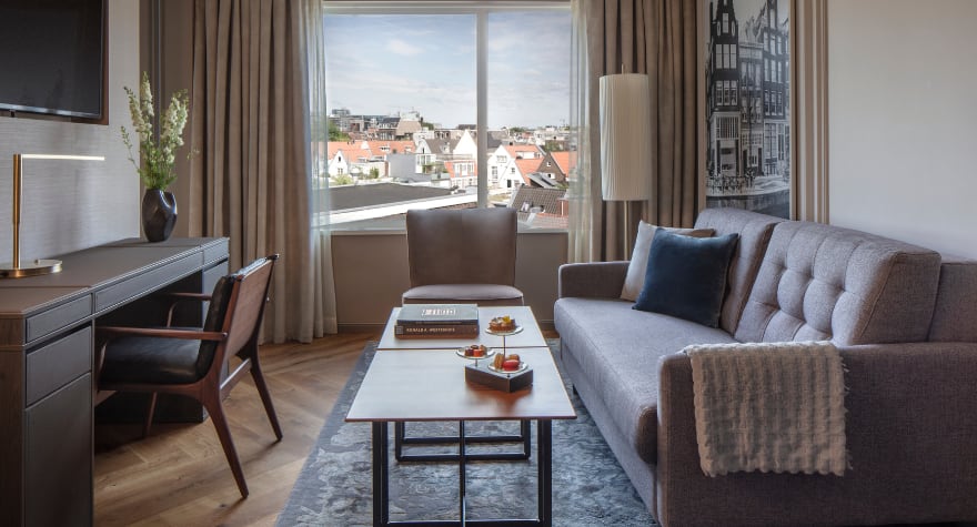 标准套房 设有一个时尚典雅的起居区,空间更加宽敞,非常适合那些想要边旅行边工作,或希望长住的宾客。全天享用醇香意式浓缩咖啡和本地特色零食,保持满格活力,亦可打开两台纯平电视中的一台,实时纵览国际动态。