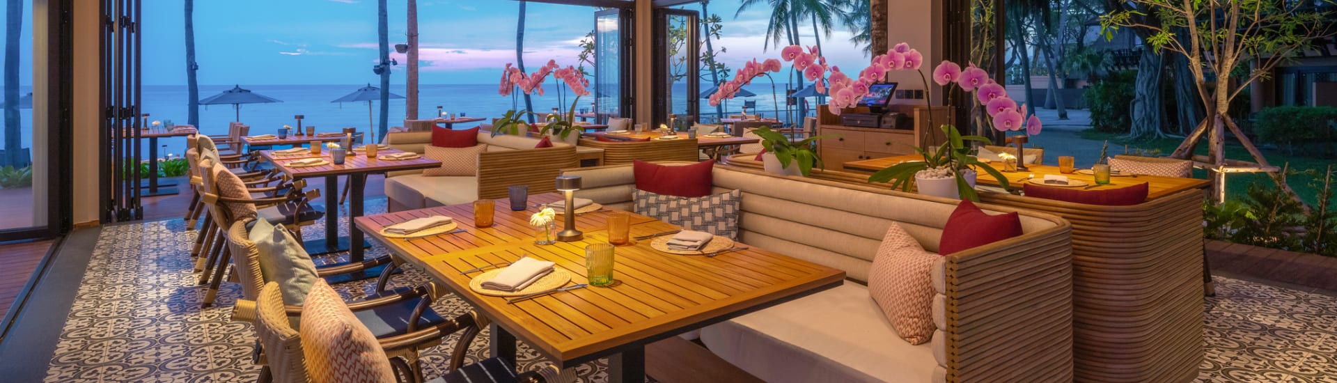 欢迎来到 Sea Fire Salt —— 华欣的海边度假胜地。在这里,惬意氛围与海洋的宁静交织,精致美食与手工调制饮品相辅相成,带来完美的海滨体验。