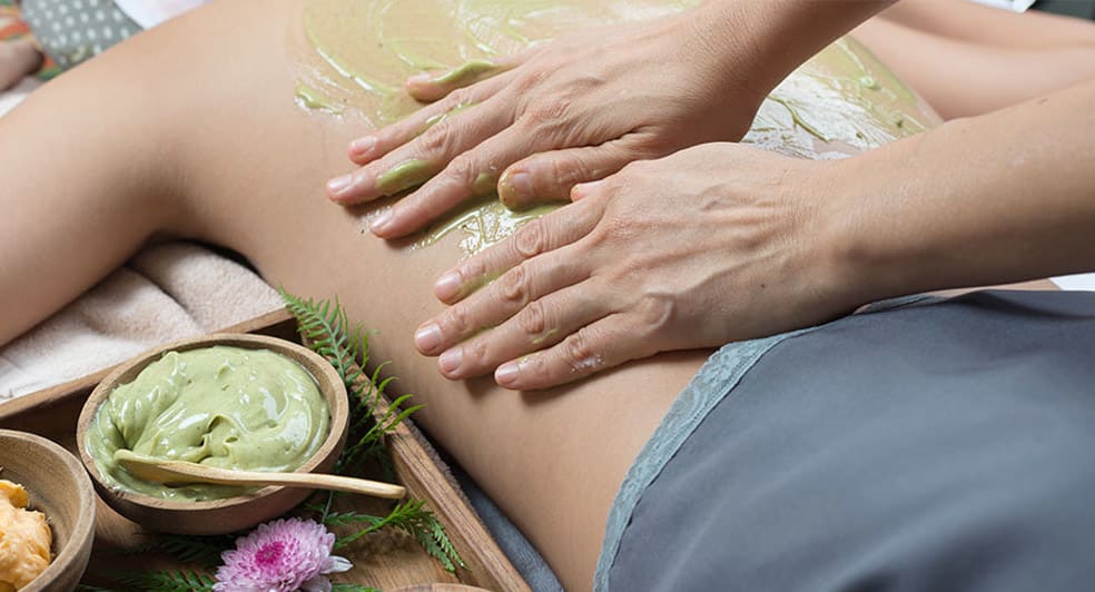 蒸汽浴 • 花瓣足浴 • 椰子角质护理 • 户外淋浴 • 泰国草药按压按摩 • 茶点