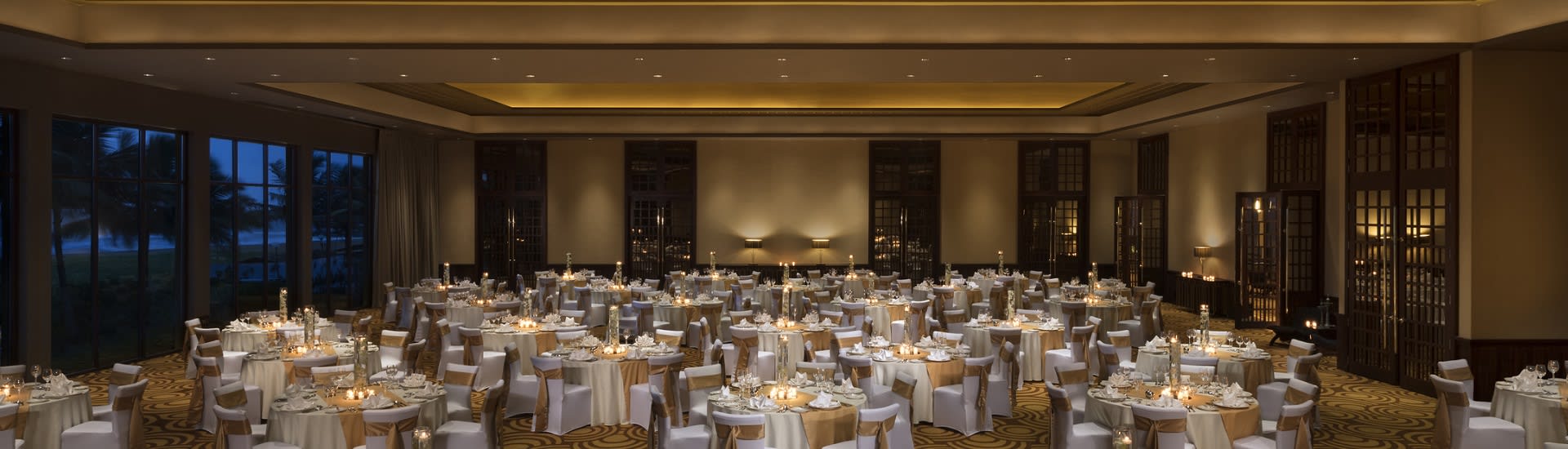 内饰穹顶天花板配中性色调,外饰印度洋和泻湖全景,本宴会厅拥有诱人的自然背景,是举办传统仪式、正式宴会或鸡尾酒招待会的最佳选址。