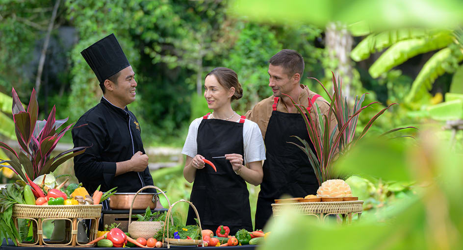 我们周围的水域物产丰富,您可以尽情享受海鲜盛宴。 从当日捕获的食材中挑选,然后在主厨的逐步指导下煎炒烹炸,再加入泰国香料增加层次感。