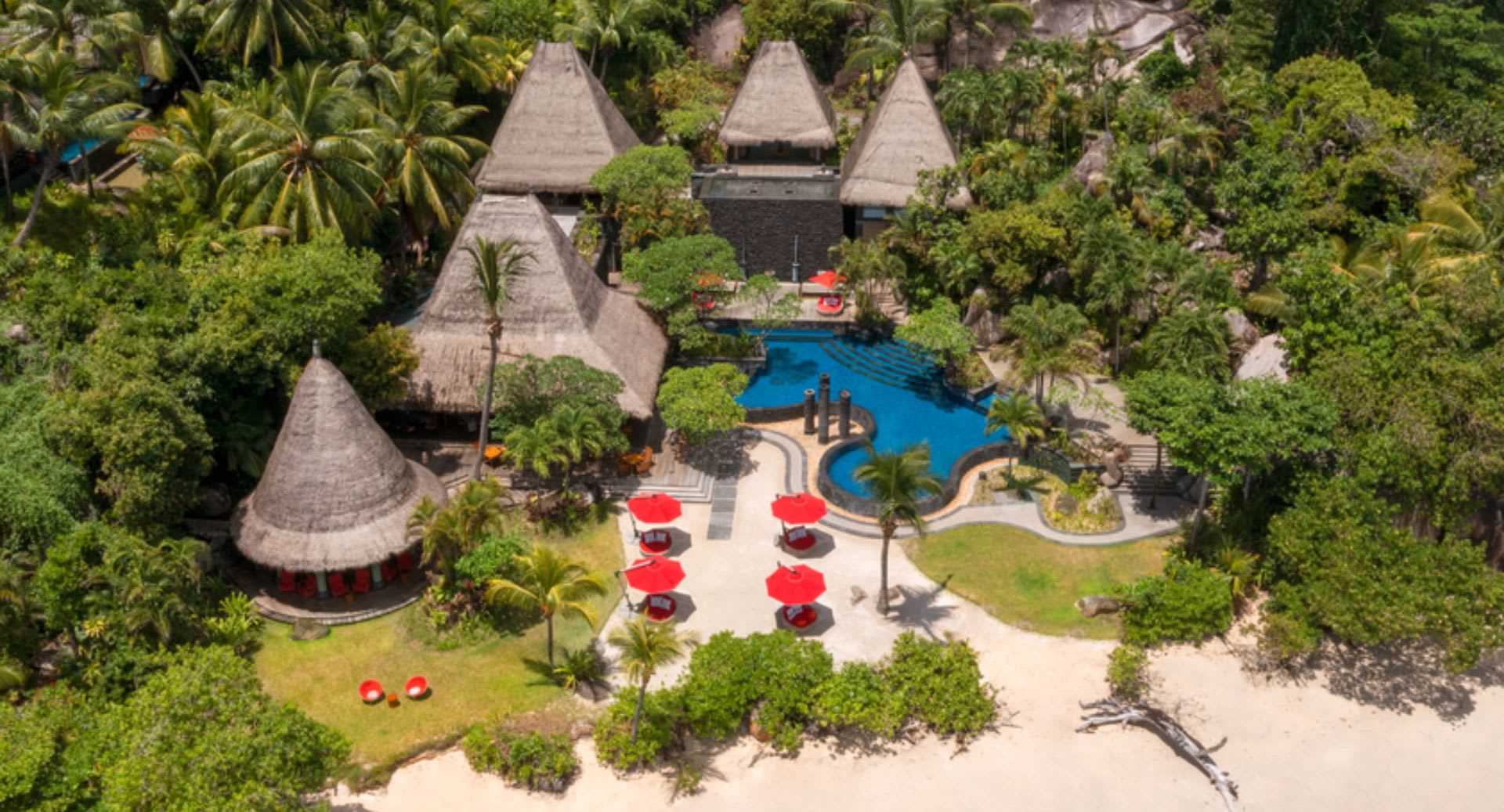 九栋高级海滩泳池别墅通过花园步道轻松相连,非常适合家庭入住,可直接通往柔软洁白的安塞路易斯海滩。