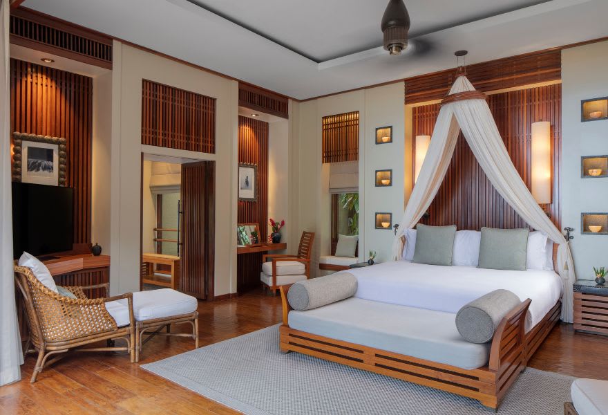 在这座远离喧嚣的塞舌尔度假胜地,感受静谧海岸的和谐之美,周围是郁郁葱葱的花卉与芳香四溢的香草花园。 这些豪华别墅与周围环境完美融合,空间宽敞舒适,非常适合亲朋好友共度美好时光,尽览纯粹原始的自然美景。 专属别墅管家全程提供贴心服务,确保您尊享无忧的度假体验。