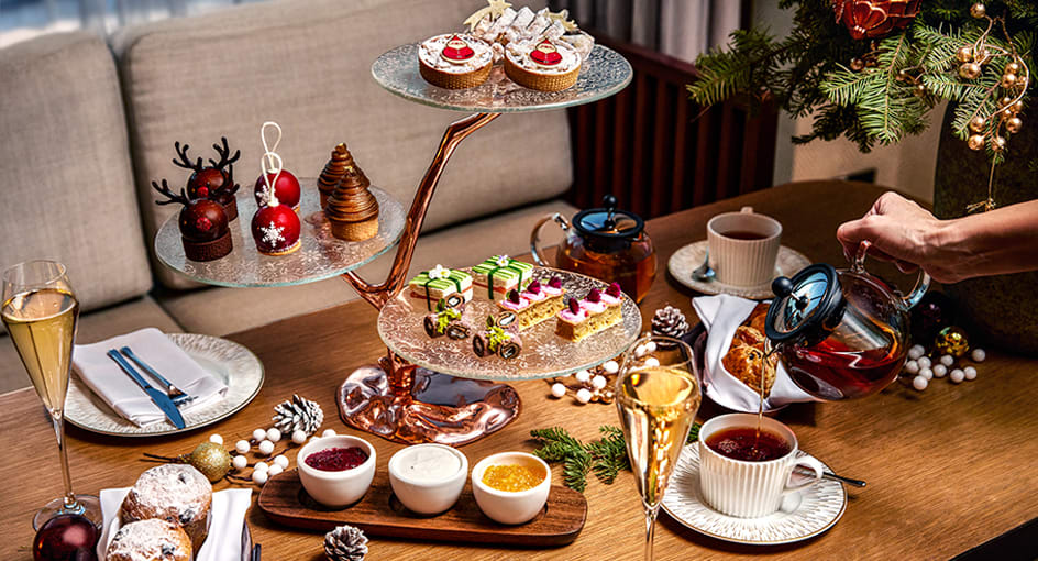 Celebrate with a selection of sweet and savoury delights inspired by the holidays, served with your choice of tea or coffee in a cheerful setting.