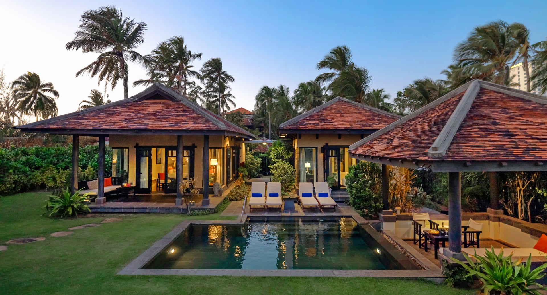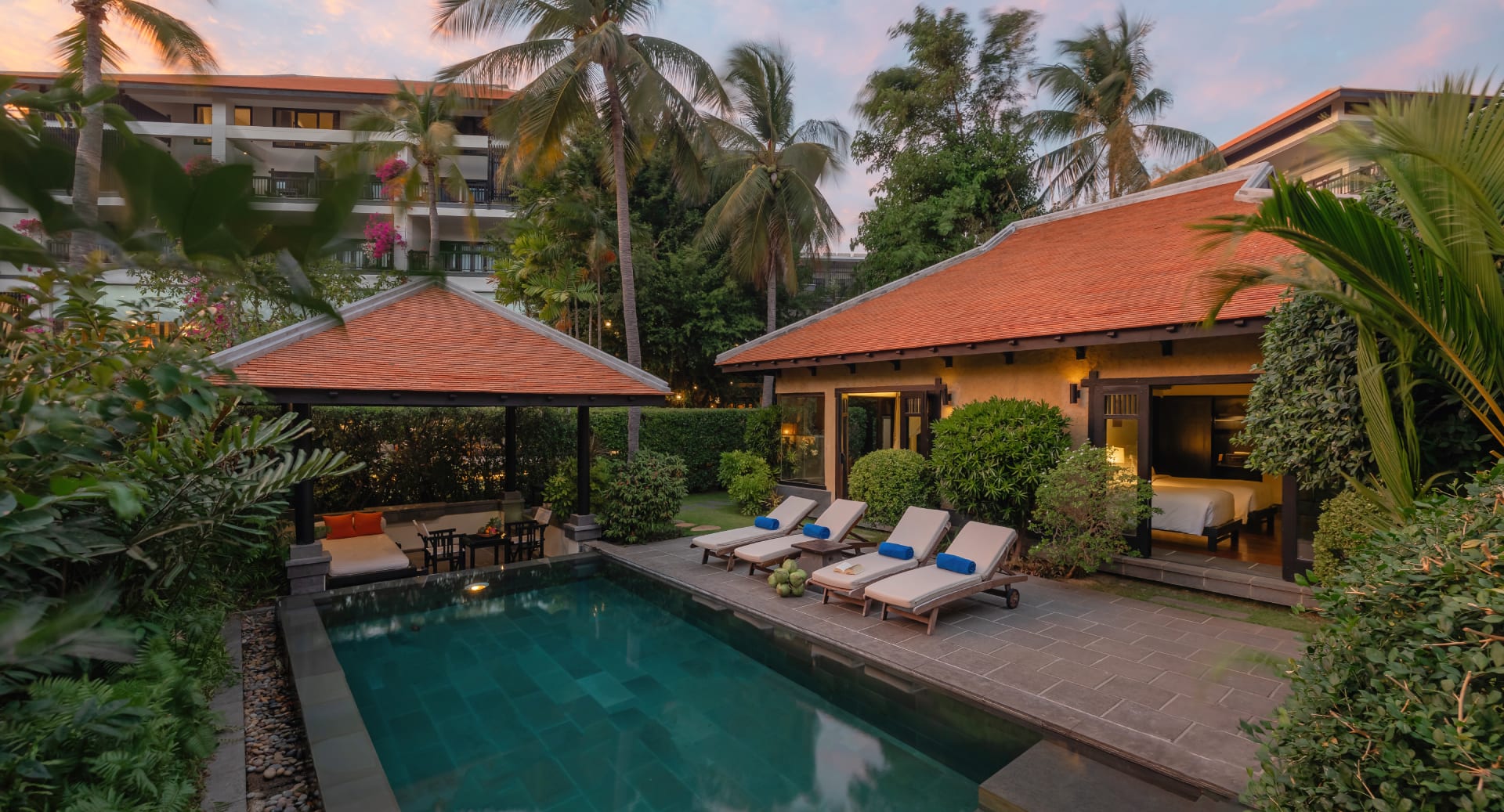 度假酒店游泳黄昏
