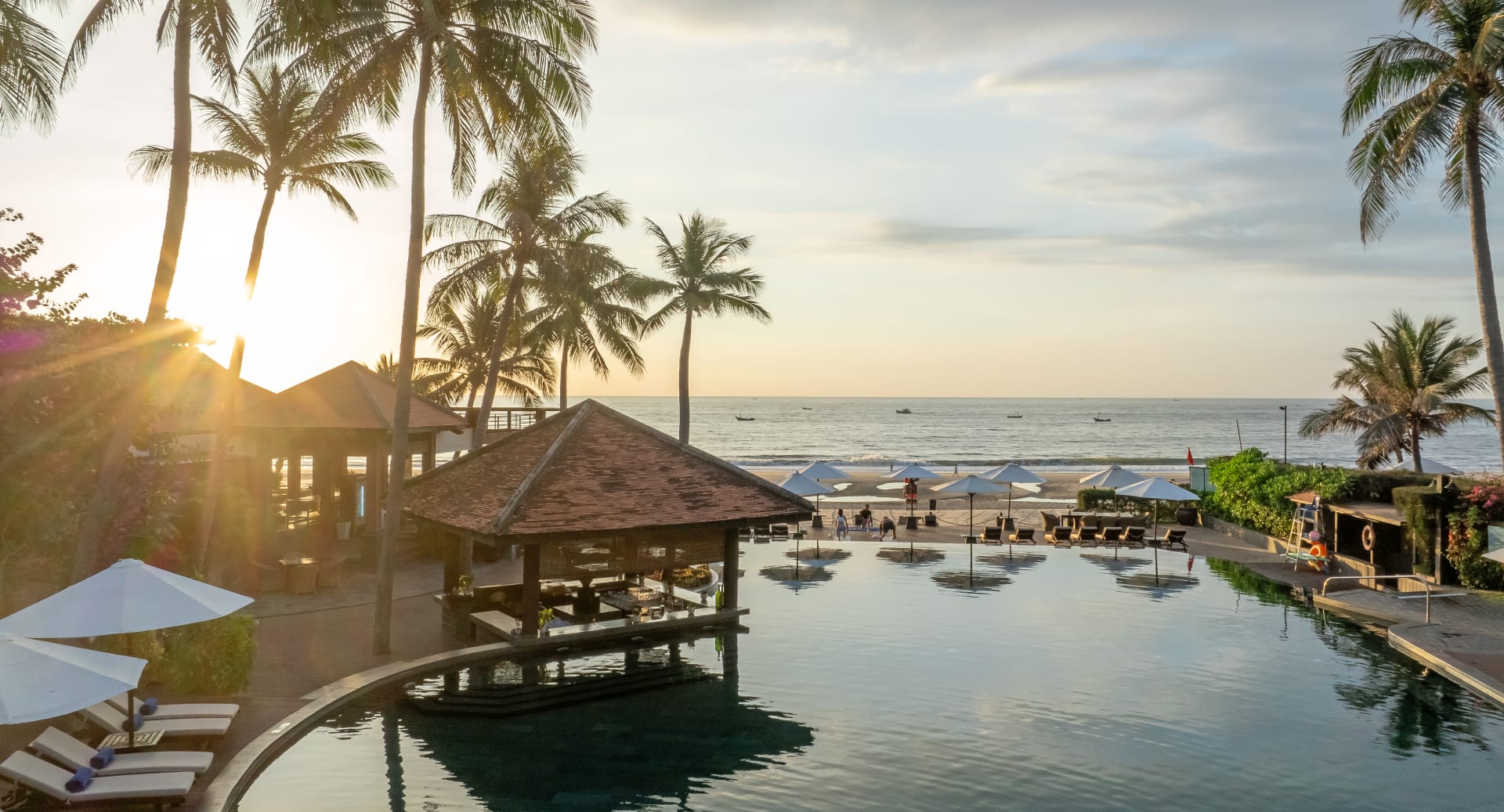 泳池甲板的迷人沙滩美景