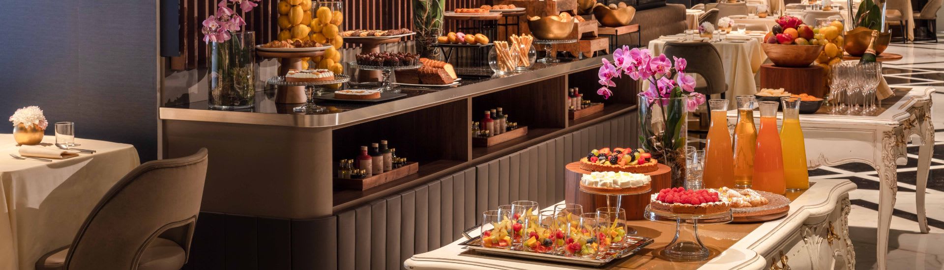 清晨醒来,一边享用美味早餐,一边欣赏罗马宏伟壮观的城市美景 白色大理石装点的优雅餐厅可俯瞰繁华的共和国广场。 享用卡布奇诺咖啡、新鲜烘焙的美食、水波蛋、美味煎饼等。