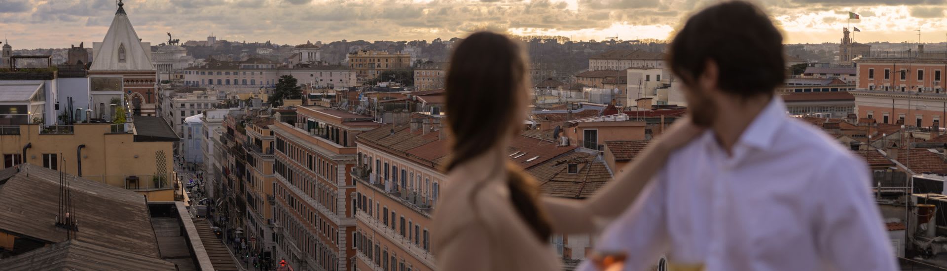 日落时分登上屋顶,感受充满魅力、现代都市风格的环境,欣赏360度°全景视角下的共和国广场和罗马城。