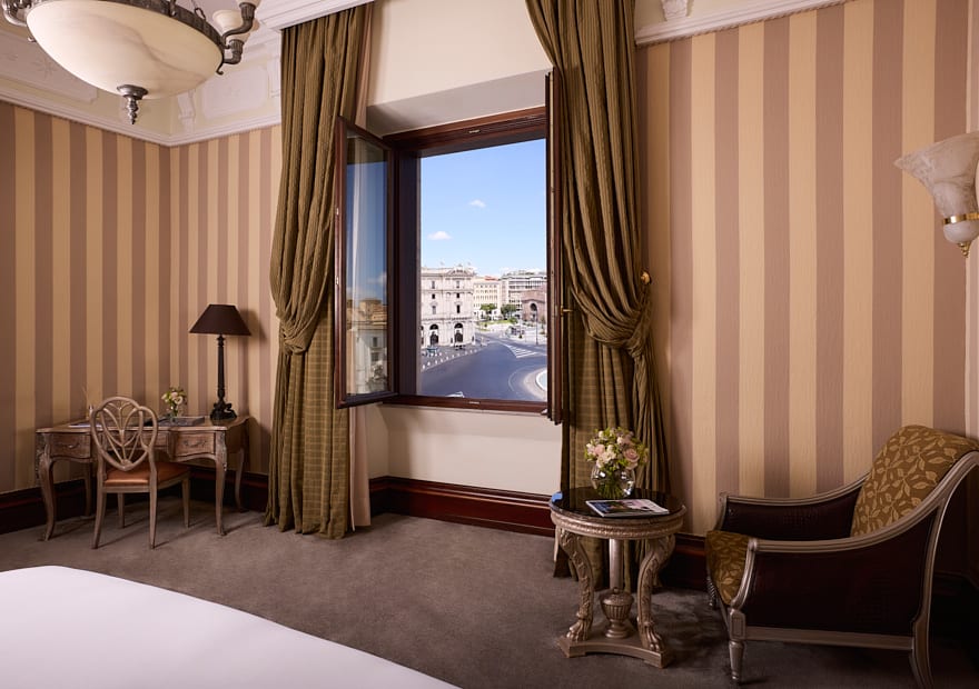 罗马奈迪宫安纳塔拉酒店的豪华套房一直深受各大明星和皇室成员的喜爱。这些套房典雅迷人,极具历史风情,处处流露着罗马的别样魅力,欢迎品味非凡的宾客光临下榻。每一间套房均采用别具一格的装饰,配备现代化便利设施,亦坐拥罗马这座城市的曼妙风景,确保您住得舒心适意,留下美好难忘的记忆。