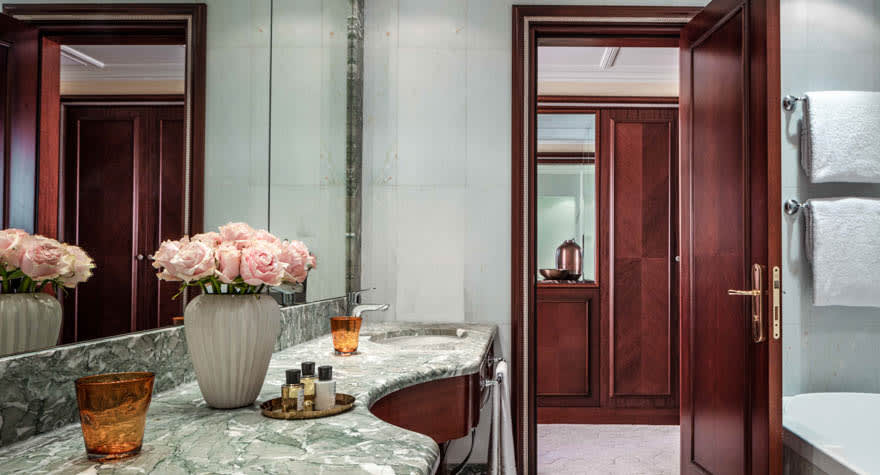 从轩敞舒适的套房内饱览共和广场的迷人景致,在这座永恒之城乐享宾至如归的住宿体验。您可以在楼下时尚别致的休息室内放松身心,也可以在楼上的夹层中安然入睡。舒适地坐在床上,抬眸远眺神话中的少女在历史悠久的喷泉中嬉戏,沉醉于古罗马的神奇美丽之中。富丽堂皇的大理石浴室配备有浴缸和雨林花洒,让您尽享奢华沐浴体验。