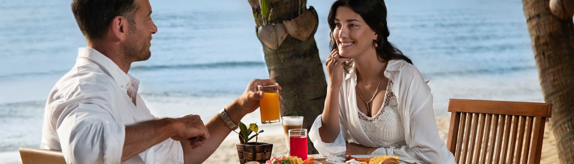 在The Bistro @ The Beach享用美食,感受脚趾间流过的细沙,挑逗您的味蕾,堪称赤脚用餐的终极奢华。享用美味的自助早餐,欣赏波光粼粼的大海美景,开启悠然的一天。您可以根据自己的喜好,享用异国情调的新鲜水果、精致的糕点和鸡蛋等,为一整天注入能量。午餐和晚餐菜单融合了当地特色和米其林级的精湛厨艺。享用帕岸岛酸橘汁腌鱼和芒果奶油意式奶冻。