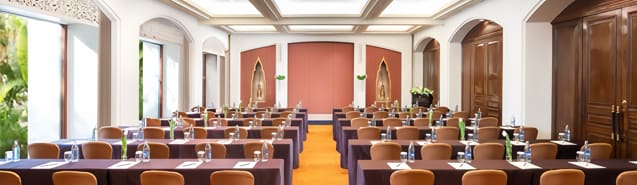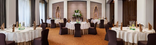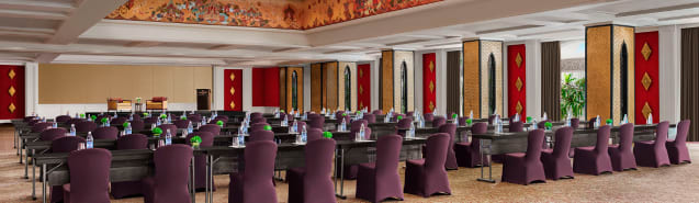 大宴会厅可举办奢华庆典活动,最多可容纳1,000人 。 曼谷拥有无与伦比的天花板壁画和吊灯。 欣赏热带花园的景致。 在迎宾露台上欣赏金色鲤鱼。