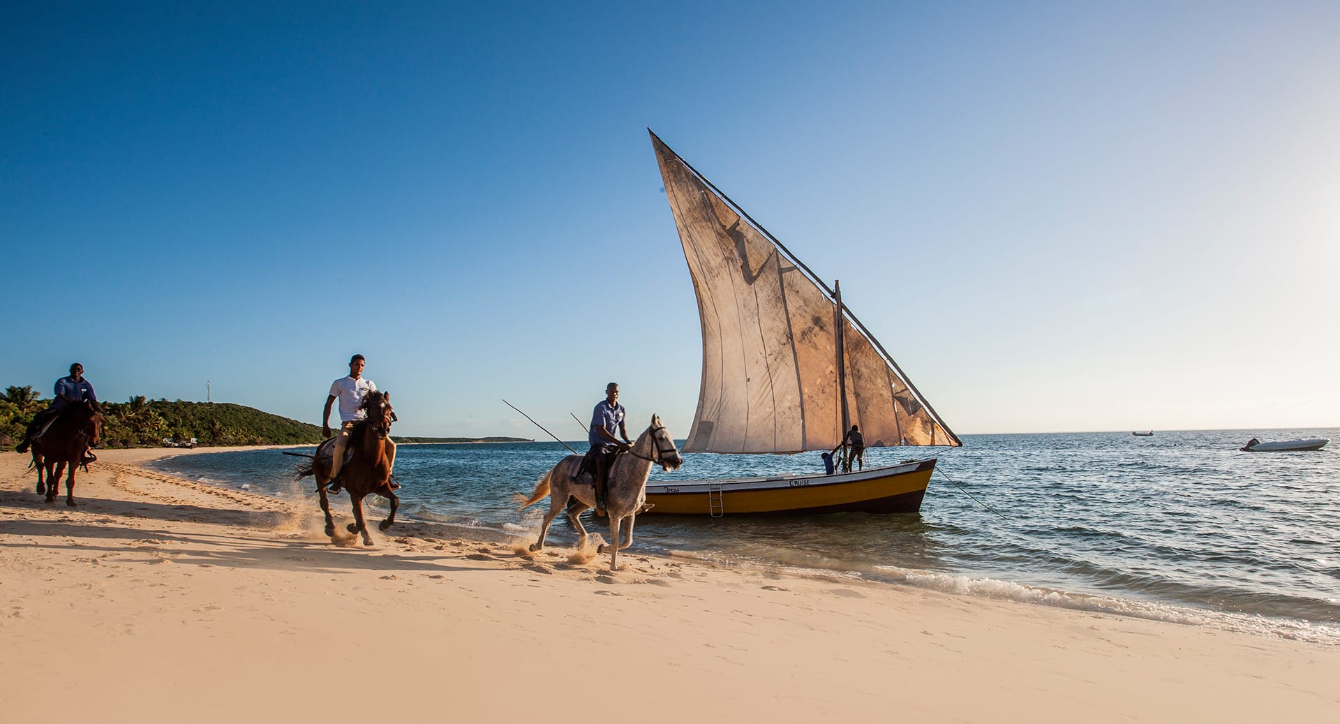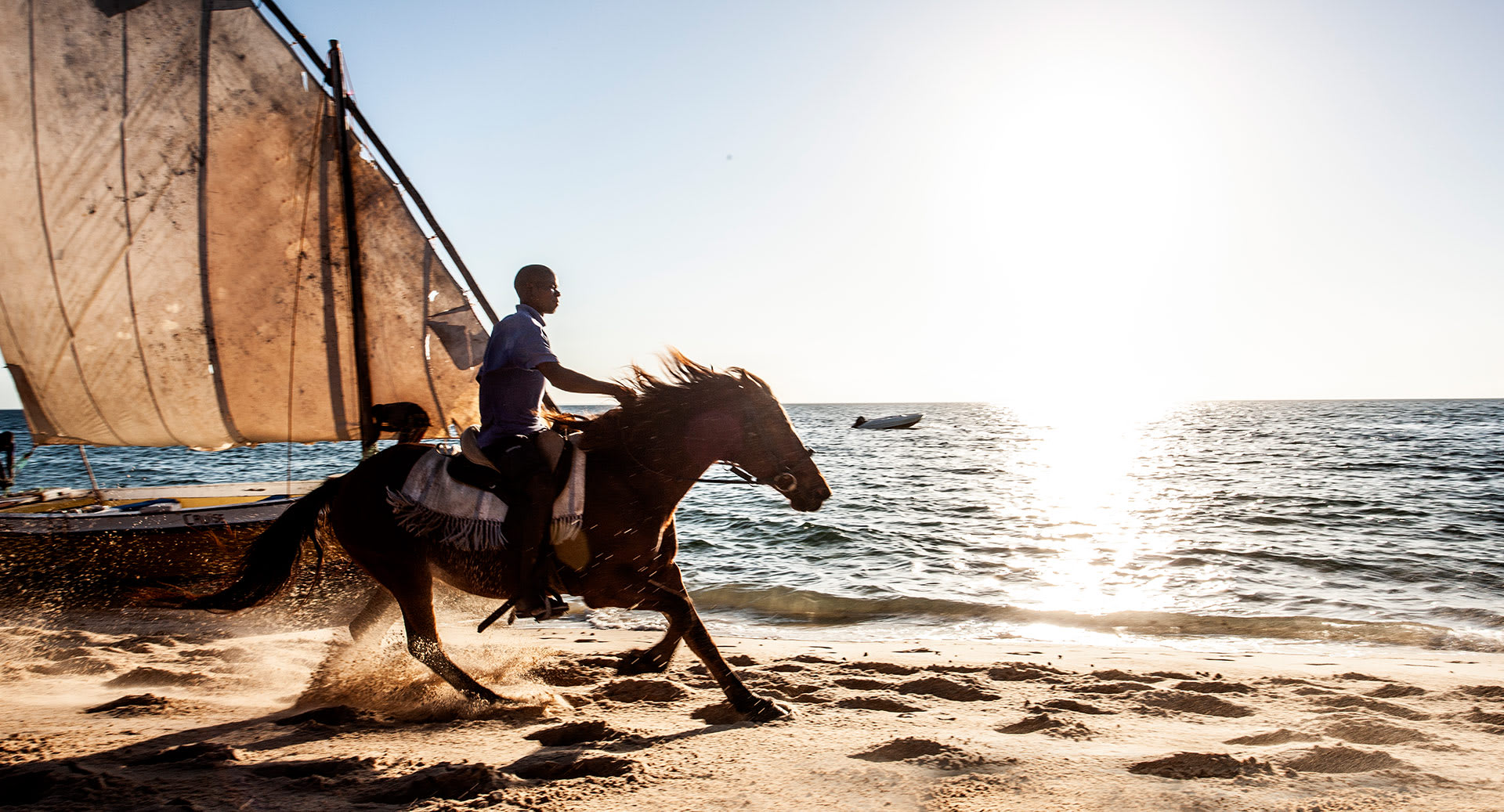 Embrace the freedom of Mozambique’s pristine beaches with an enchanting horseback ride. Set out in the cool serenity of early morning or the golden glow of late afternoon, and discover the island’s beauty on horseback. Canter along powdery white sands, feel the ocean breeze and indulge in the rare delight of strolling beside your horse in the gentle sea waves, creating memories that resonate with the rhythm of nature.