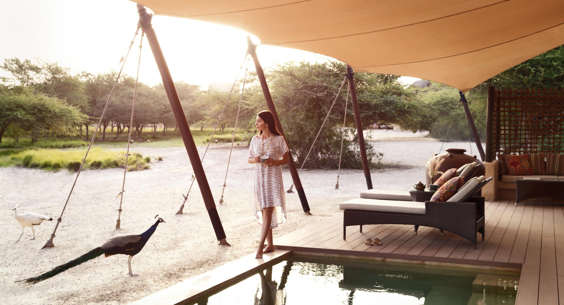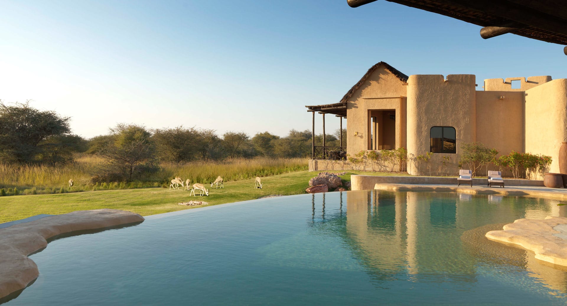 Al Sahel brings the rugged beauty of lush savannah to the desert. Wake up to the sight of gazelle grazing in front of one of only 30 safari-style villas.