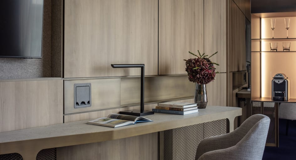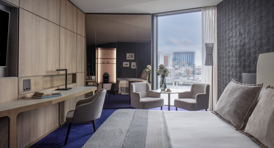 入住豪华大运河景观房’,您可饱览大运河广场与水滨的绝美全景。高科技设施包括交互式娱乐系统和Nespresso的Zenius型号咖啡机。冲一杯现煮咖啡,随后惬意地倚坐在伊姆斯风格的椅子上,或沉浸于唯宝&大理石浴缸的舒适之中。