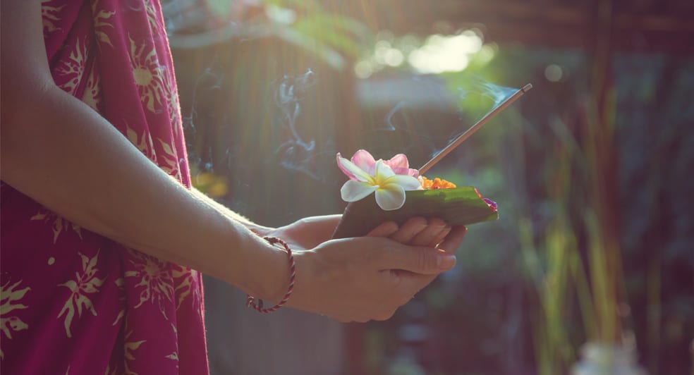 在巴厘岛您应该会发现当地居民屋外和神龛摆着献祭的"扎囊萨利",现在不妨自己设计一个。 学习如何用椰子叶编成小托盘,然后选择自己喜欢的鲜花。