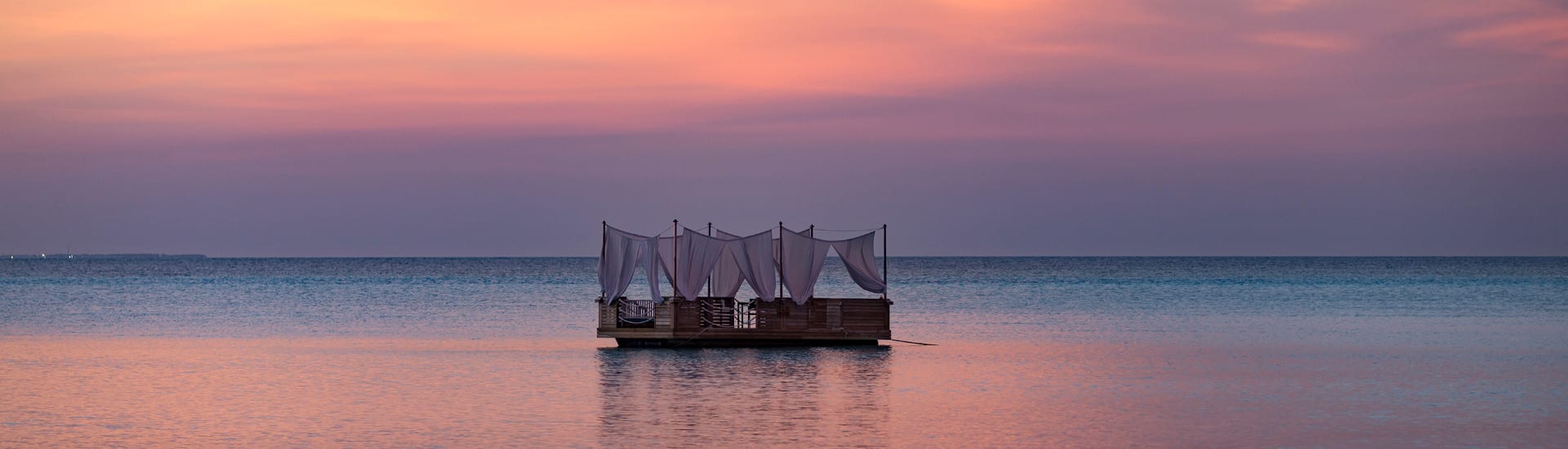 在火把的指引下步入私密的用餐环境中,或是头顶璀璨星空,或是隐蔽于私人树冠帐篷之中。赤脚踩在沙滩上,由私人大厨将刚刚烤好的龙虾端上你们的私享餐桌。与朋友一起在泻湖边品酒,