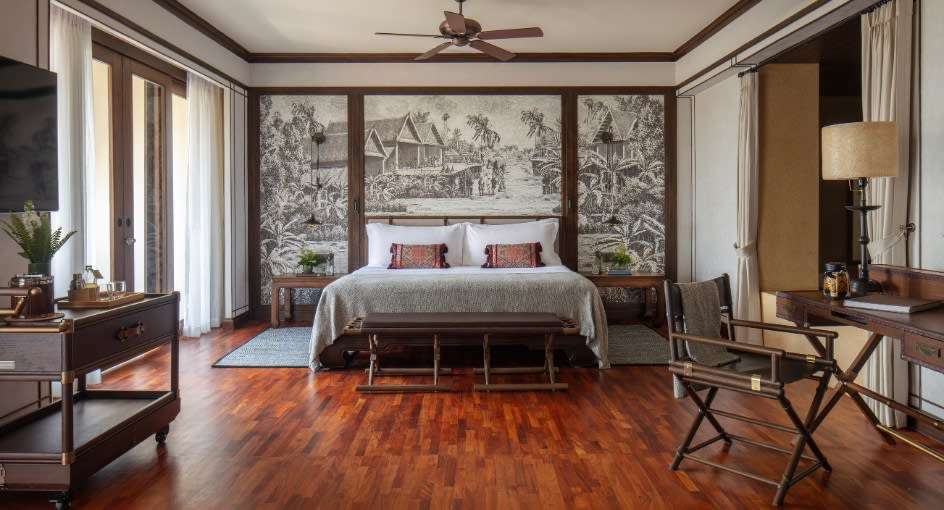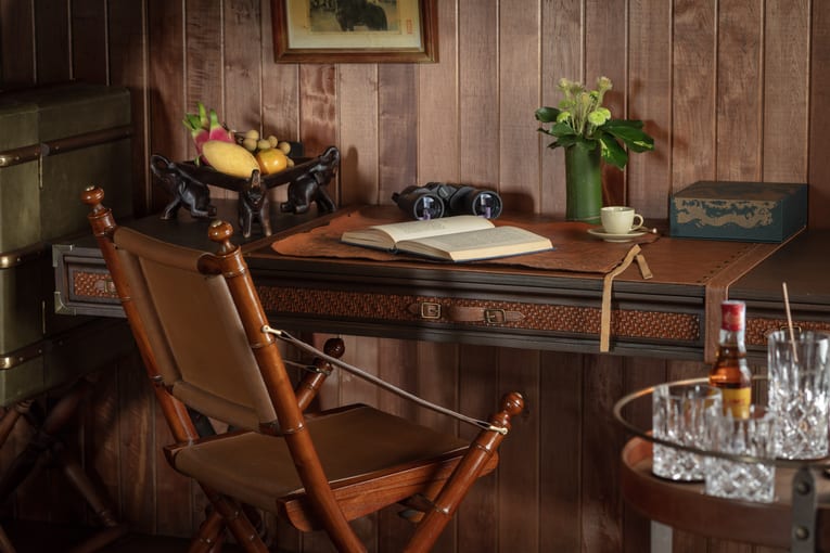 湄公探险套房向数百年前勇敢探索湄公河的探险家们致敬,巧妙融合了兰纳文化的深厚传统与优雅的殖民风格。深色木质镶板与精美的大象雕刻彰显亚洲文化底蕴,而复古旅行箱配以古董黄铜配件和皮革绑带,则增添了一抹西方韵味。每间套房均以湄公河沿岸的独特地区命名,墙上悬挂的艺术作品展现这些历史悠久之地的独特魅力。